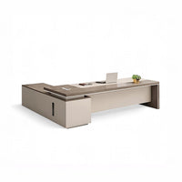The professional luxury L - shaped executive desk is made of premium E1 grade eco - friendly materials, with a precision edge design, thickened desktop, and elegant texture. It's great for high - end offices and pairs well with other office furniture.