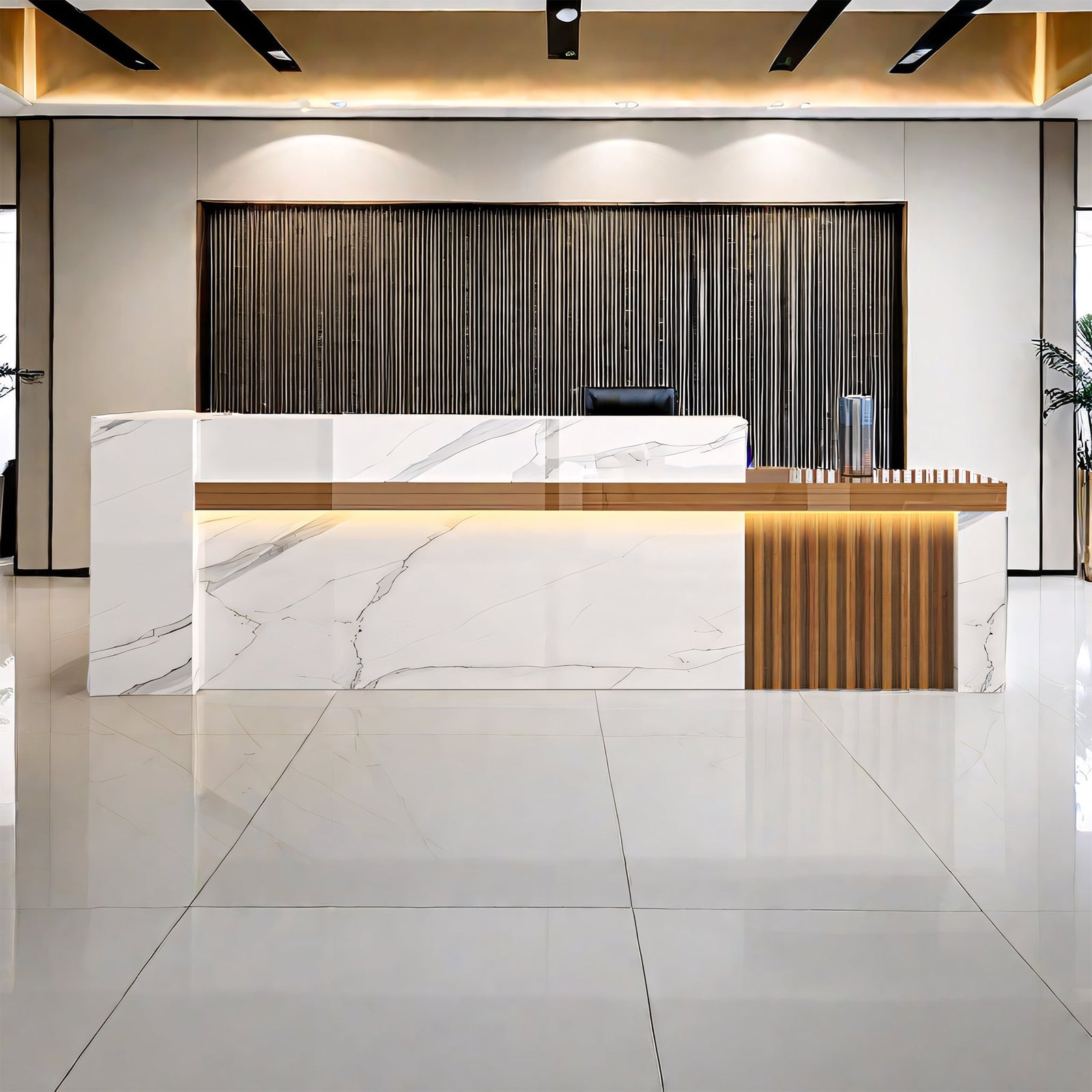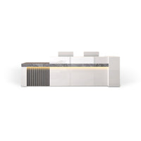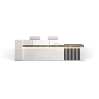 Featuring LED-illuminated wood-grain countertops, premium-grade durable commercial finishes, and an integrated cable management system, it is the ideal choice for hotel front desks.ed from Australia.The large reception desk in the hotel lobbySuitable for large reception desks in shopping malls, hotels, restaurants, and amusement parksRear view of reception desk showing built-in file cabinets and lockable storage drawers for offices,Shipped from AustraliaReception counter suitable for multiple staff members to serve guests simultaneously. L-shaped reception counter with customizable logo and lighting. Ideal for hotel front desks and corporate reception areas. Shipped from Australia.